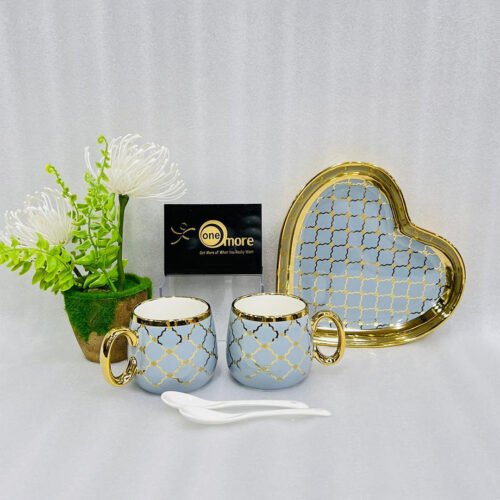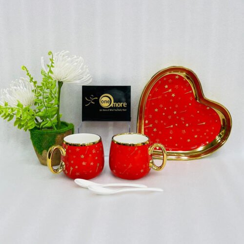 Elegant Stoneware Heart-Shaped Couple Mug & Tray Set