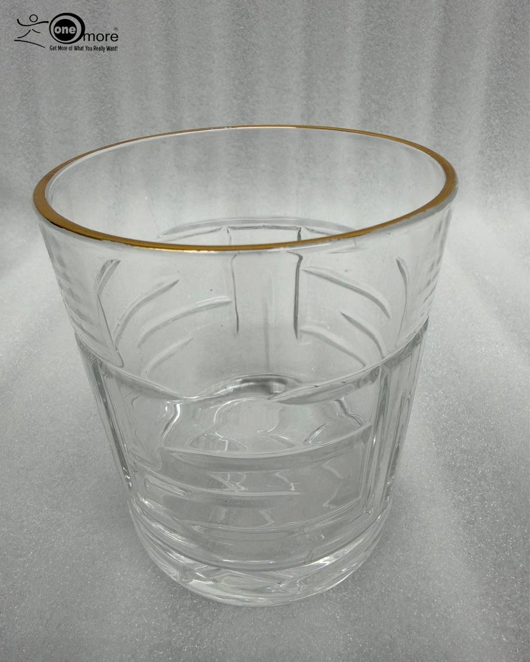Elevate your home bar or dining experience with this exquisite set of six RCR-inspired crystal glasses. Each glass features a sophisticated, deep-cut geometric pattern that captures and refracts light, creating a brilliant sparkle that highlights the clarity of your favorite beverages. The masterfully applied golden rim adds a touch of opulence, transforming a simple drink into a celebratory occasion. Crafted for both durability and elegance, these glasses offer a comfortable weight and a classic silhouette, making them the perfect choice for serving whiskey, water, or vintage cocktails with a refined, modern flair.