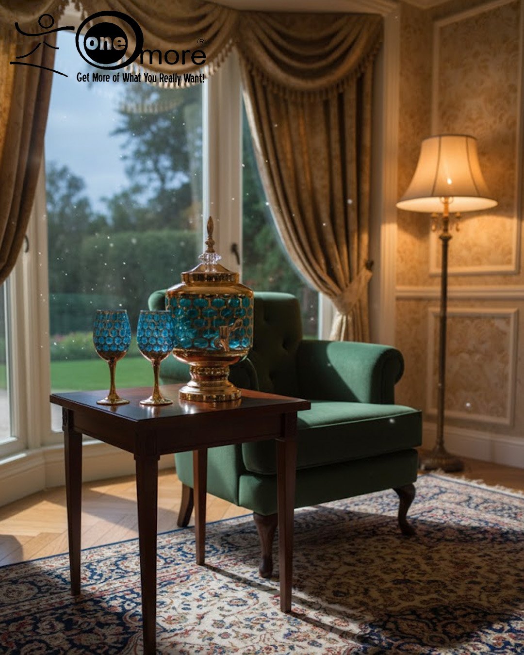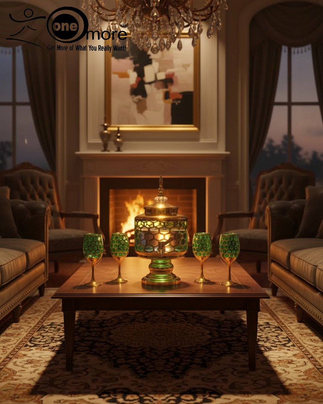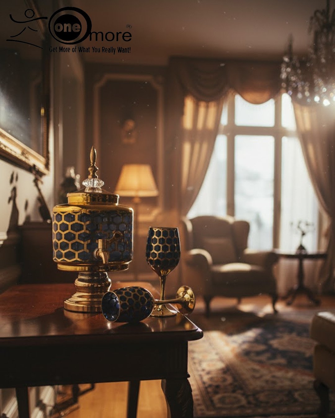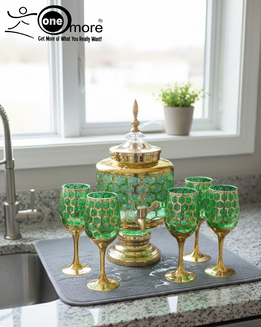 Luxury Honey Comb Golden Glass Drink Dispenser Set with Goblets