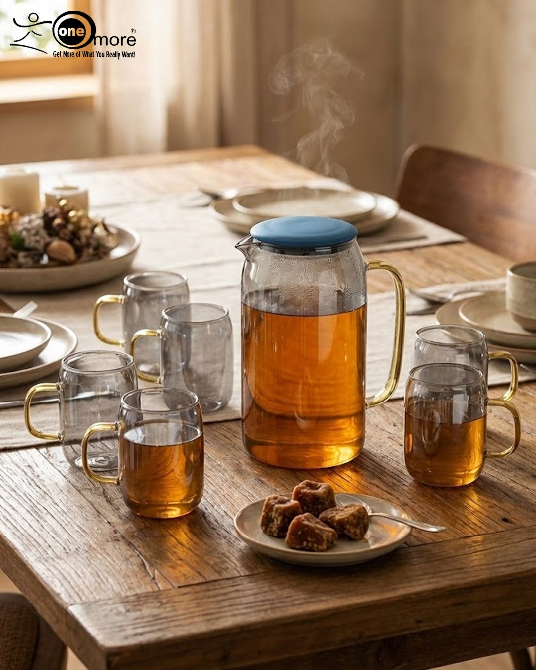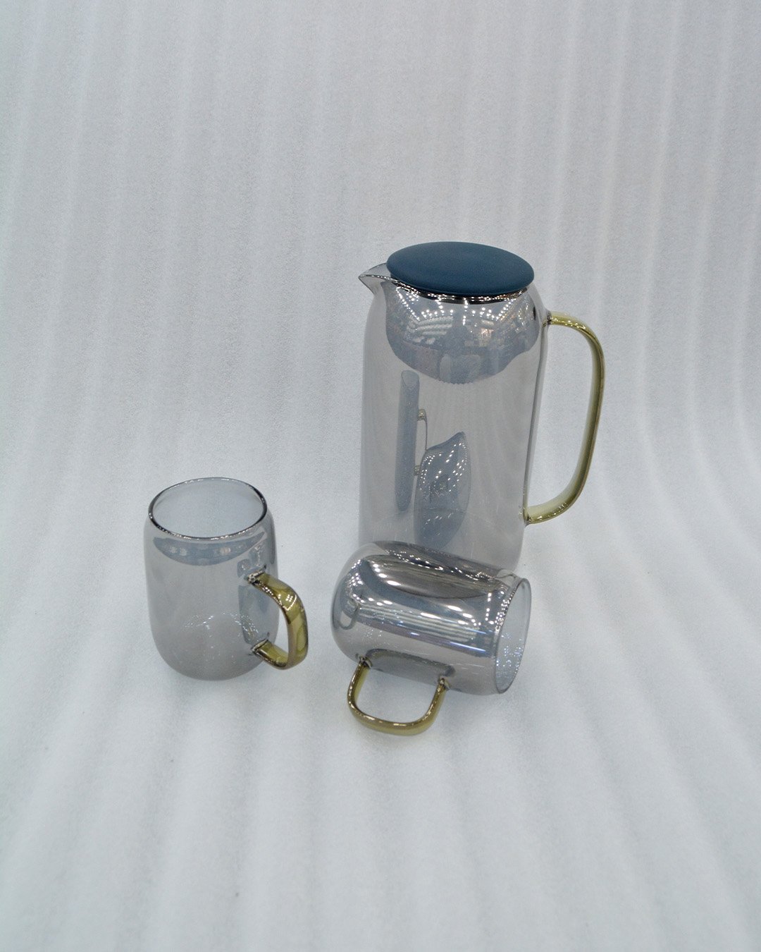 Elevate your dining experience with this elegant 7-piece smoked glass beverage set. Crafted from high-quality, heat-resistant borosilicate glass, this lightweight set is designed for both style and durability. Featuring a sleek charcoal tint and ergonomic gold-finished handles, it transition seamlessly from morning tea to evening refreshments.