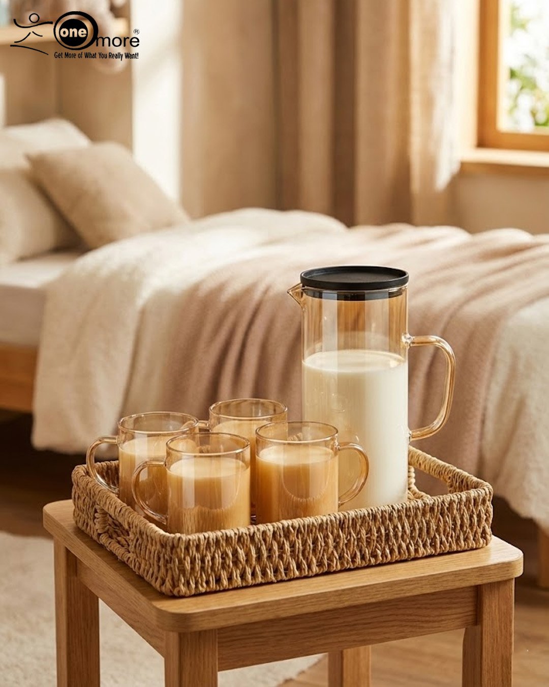 • Complete Set: 1 Large pitcher + 6 ergonomic mugs.