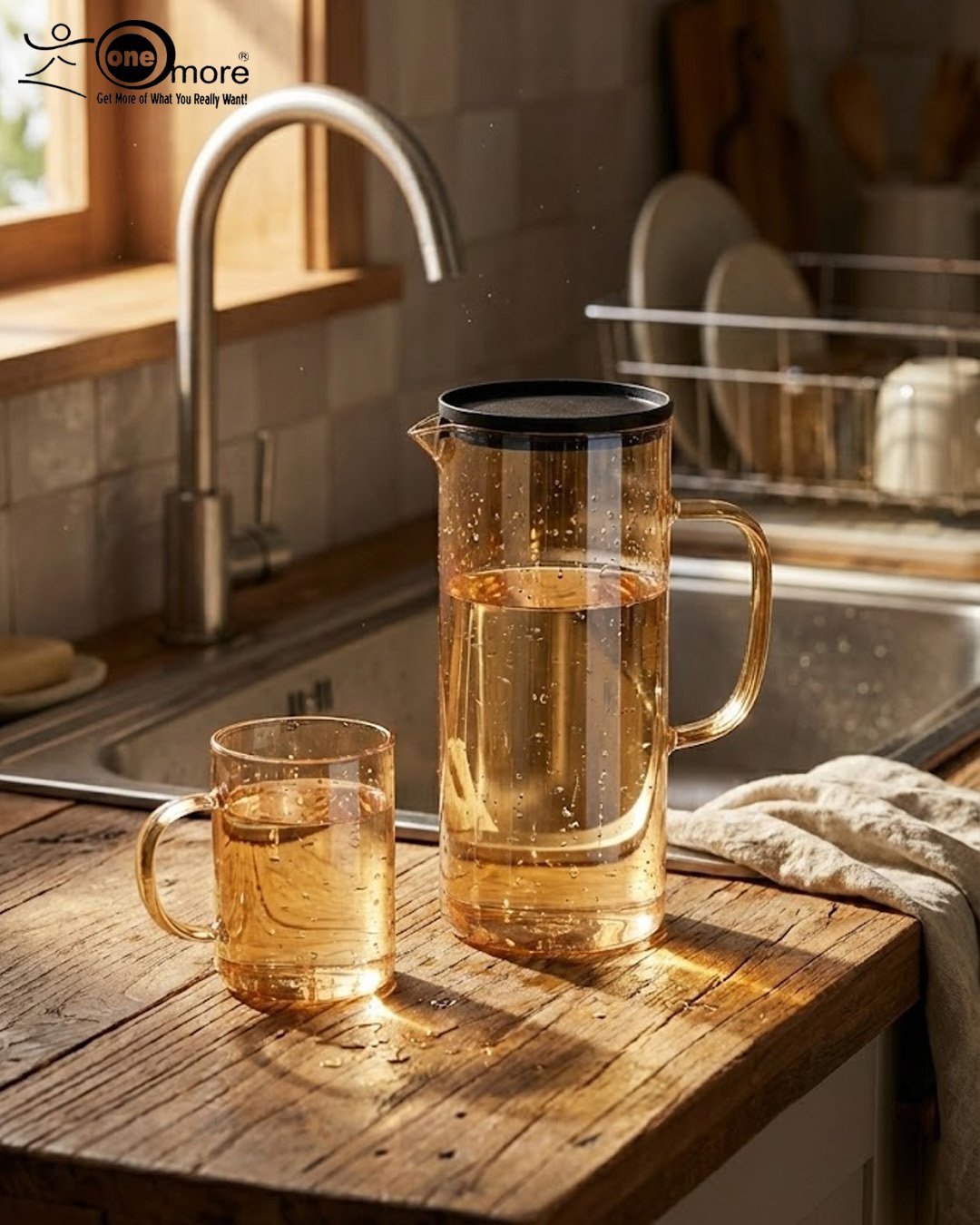 Be the first to review “Modern Lightweight Amber Glass Water Pitcher and 6-Piece Mug Set with Filter Lid”