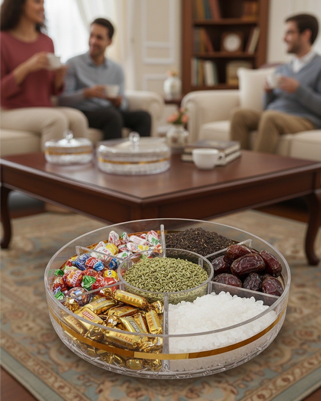 Add a touch of luxury to your table with this stunning Glass Serving Dish Set, featuring intricate cut-glass detailing and a classy gold trim. Perfect for serving sweets, dates, dry fruits, or snacks, these dishes combine elegance with everyday functionality.