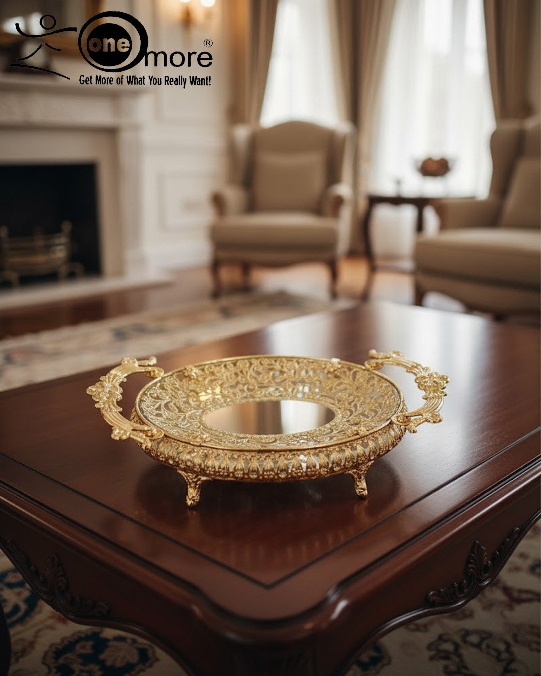 This luxurious decorative metal platter instantly transforms any surface into a dazzling display. Crafted in an opulent Victorian-style with intricate filigree detailing, this piece is the ultimate home accent for those who value timeless glamour.