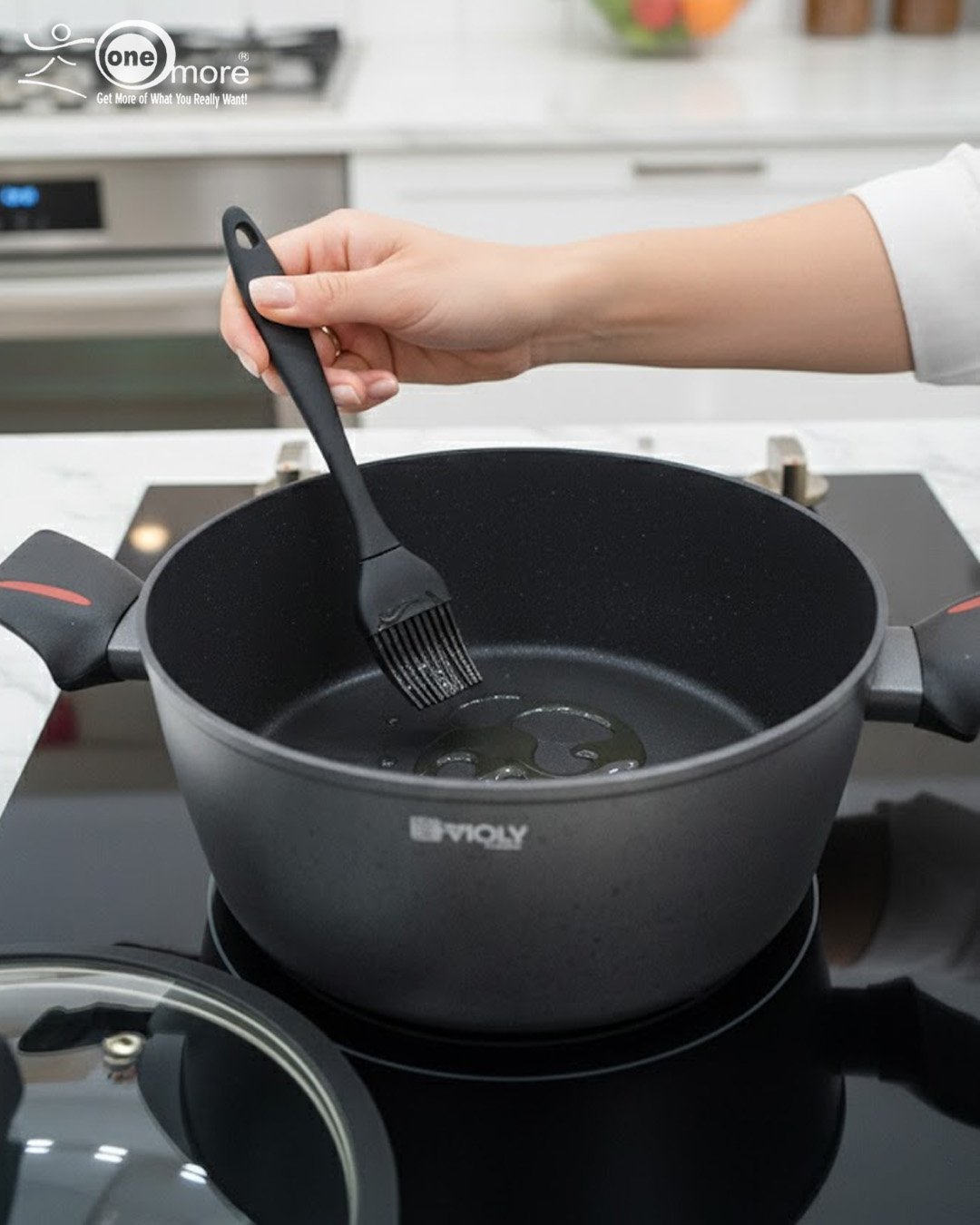 One More Premium Non-Stick Granite Casserole Pot – Available in 24cm, 26cm, & 28cm – Healthy Low-Oil Cooking with Silicone Handles (Made in China)