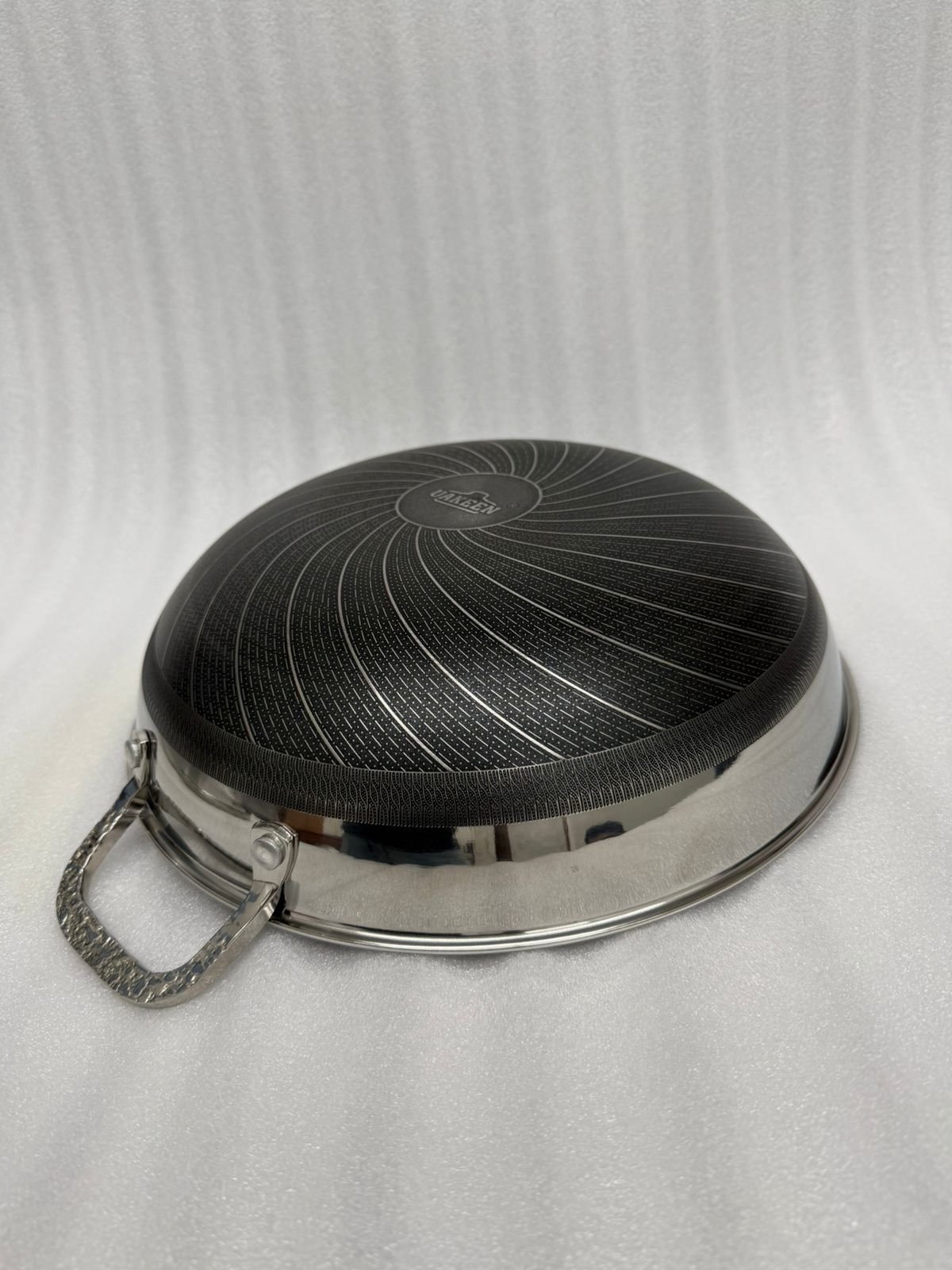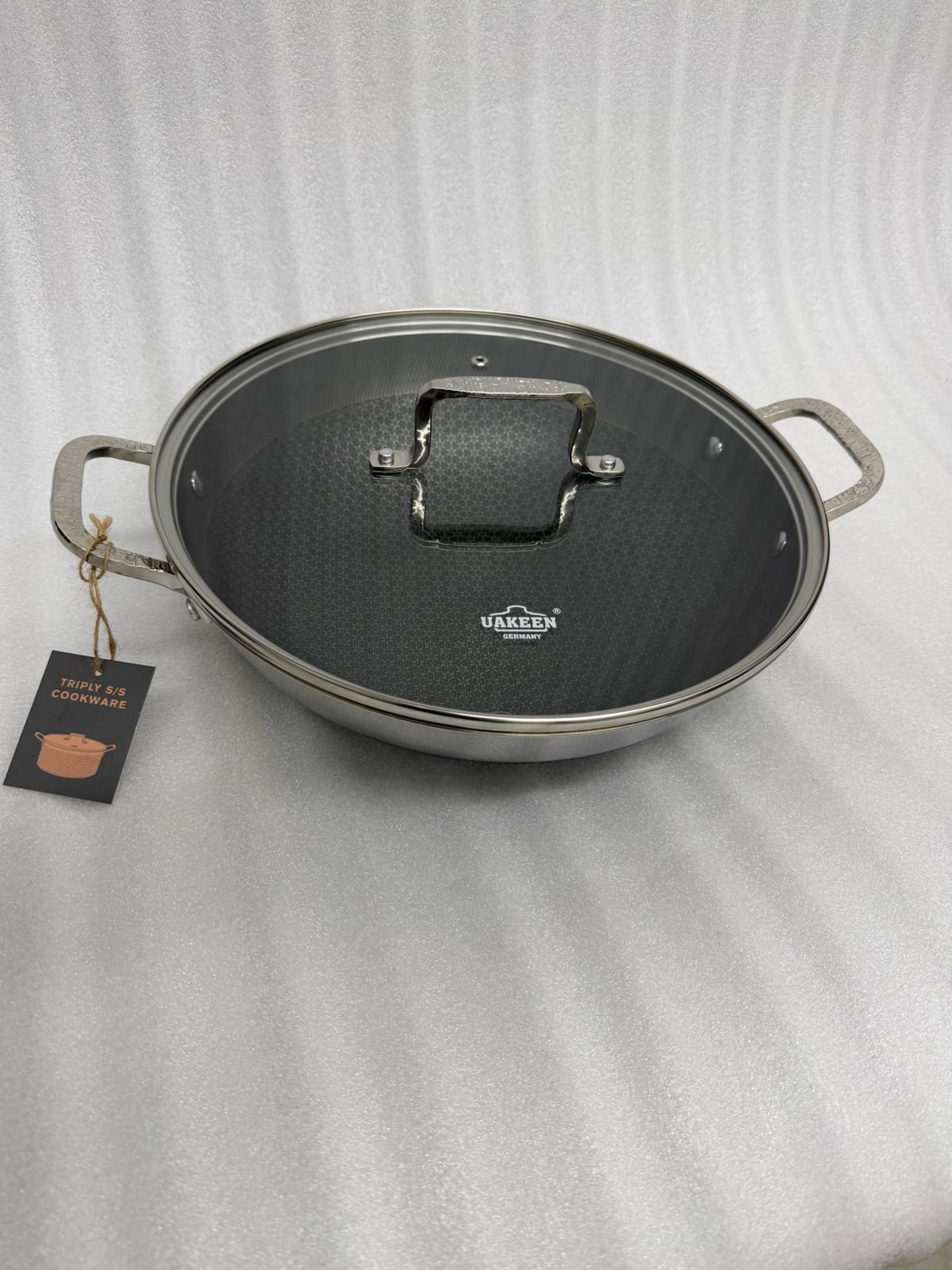 Elevate your culinary game with the Uakeen Tri-Ply Stainless Steel Non-Stick Wok, featuring cutting-edge laser-etched hexagon technology. This premium wok combines the searing power of stainless steel with the effortless release of a non-stick surface, ensuring your stir-fries and sautés are perfected every time. Designed with a durable tri-ply body for rapid, even heat distribution and a sophisticated hammered-texture handle, it transitions seamlessly from the stovetop to the dinner table. Whether you are cooking on gas or induction, this versatile wok is built to handle high heat while remaining remarkably easy to clean.