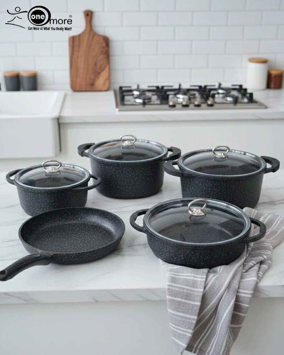 Falez 9-Piece Premium Granite Non-Stick Cookware Set – Made in Turkey | 80% Less Oil