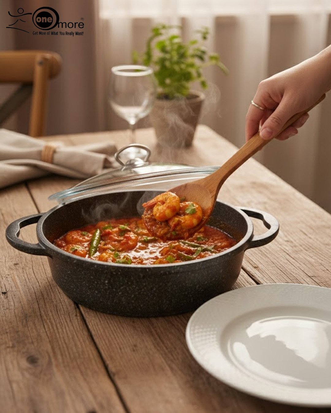 Healthier Cooking: Advanced granite coating allows for cooking with 80% less oil/fat.