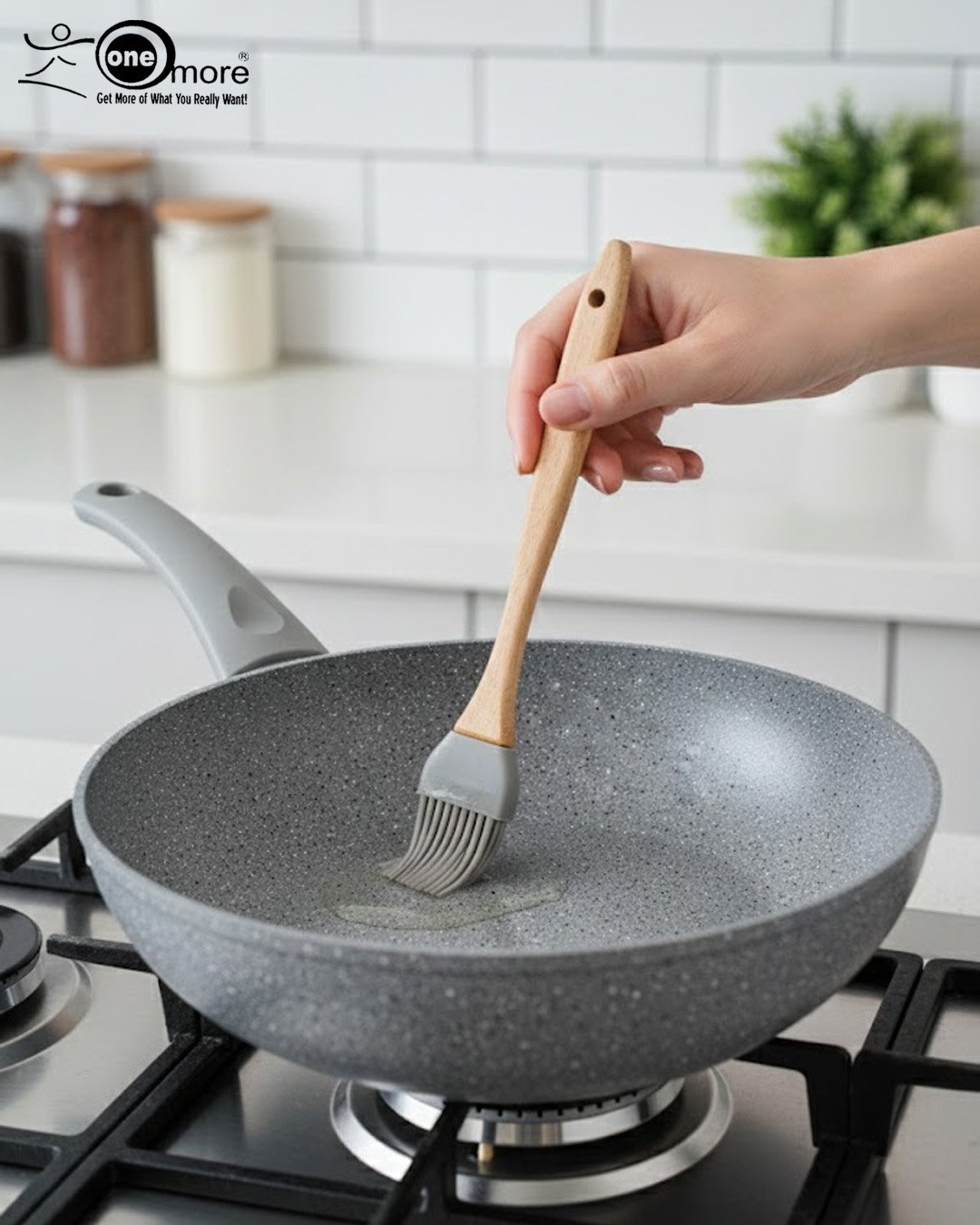 O.M.S. Non-Stick Granite Wok (Grey) – Made in Turkey | Healthy Cooking with 90% Less Oil