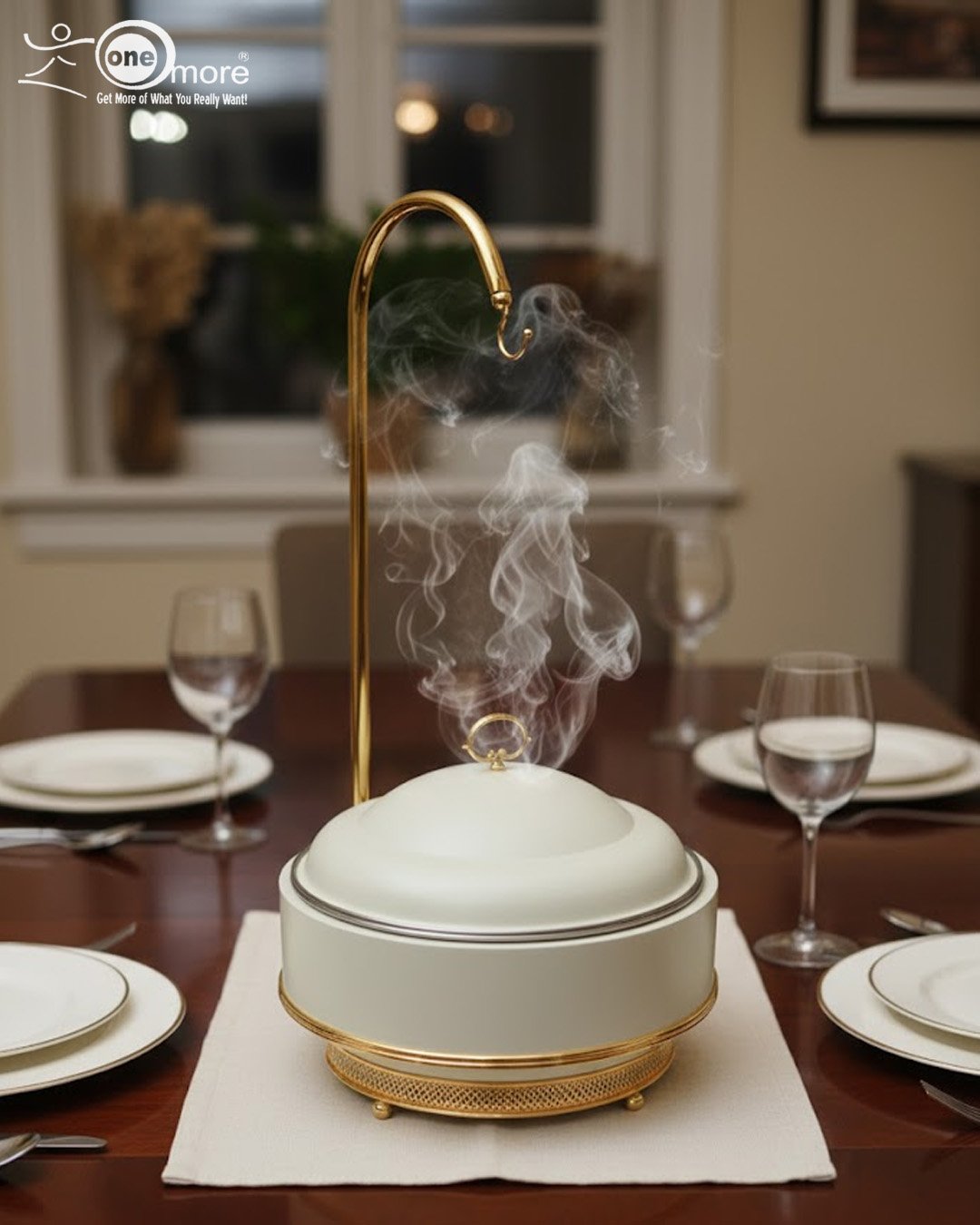 Stunning Presentation: Features a graceful golden arched stand and a stylish, easy-lift lid, making serving effortless and adding a regal look to any table.