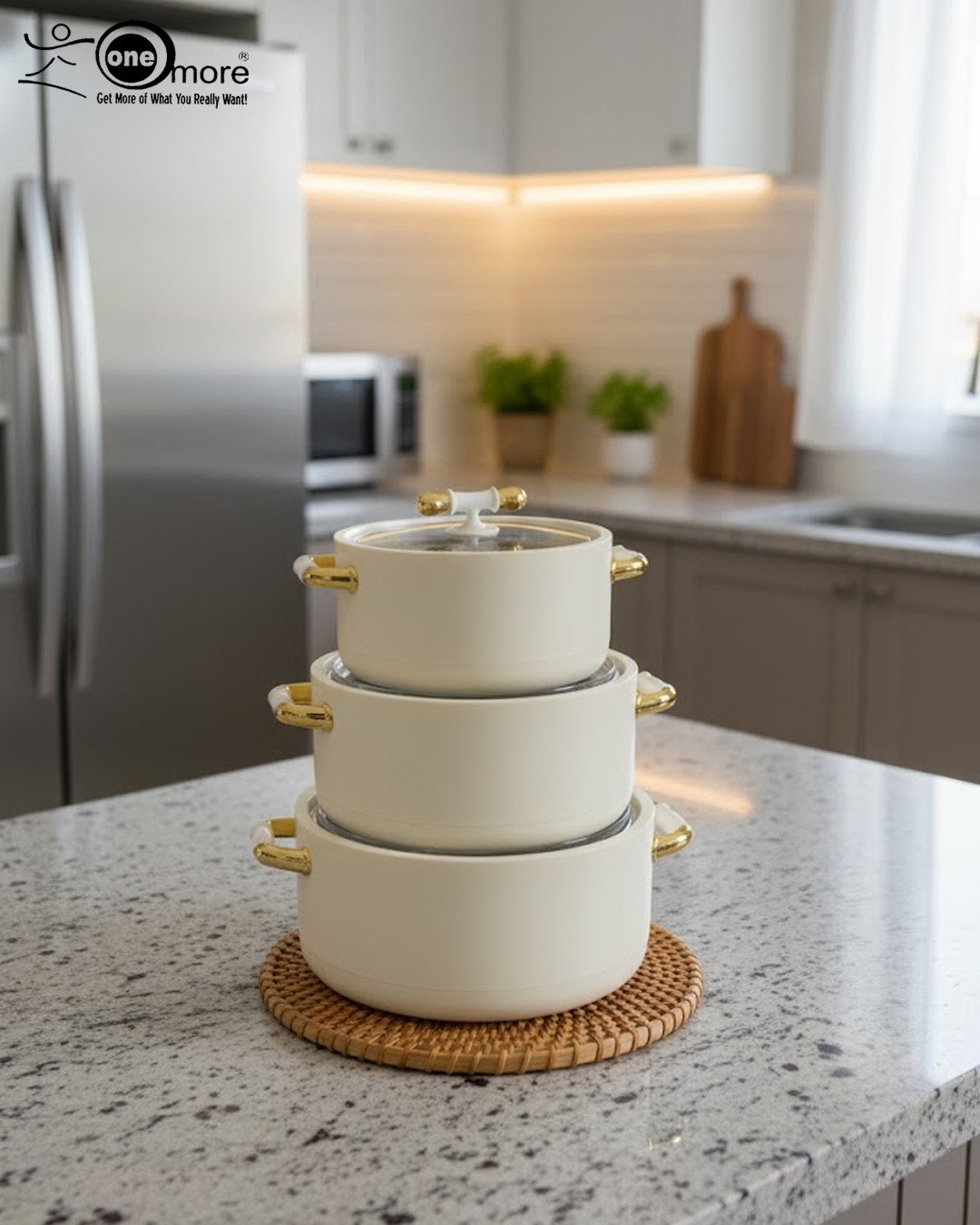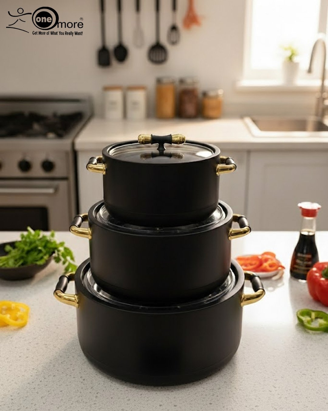 Durable & Stylish Construction: Each hot pot is crafted with a high-quality finish and features elegant gold-toned handles and accents. The set includes three convenient sizes: 1 Liter, 2 Liter, and 3.5 Liter, ideal for any quantity of food.