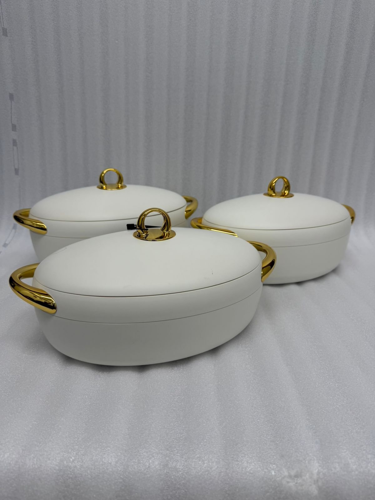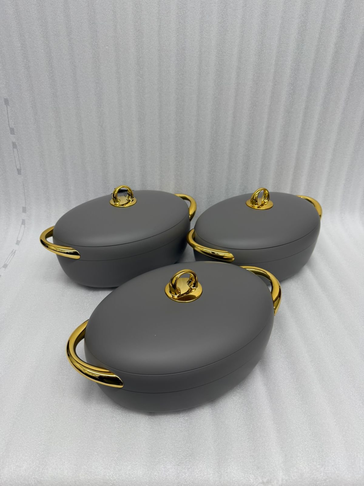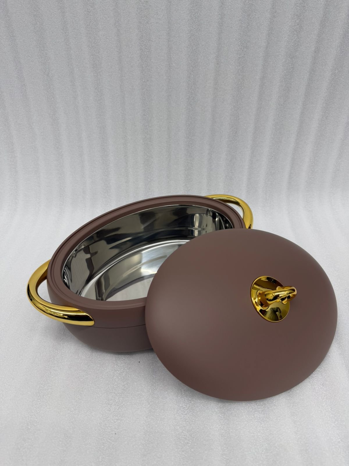 Elevate your dining experience with this elegant 3-piece hotpot set from Forever Gold. Designed to keep your meals warm and fresh, these insulated servers feature a sleek matte finish and luxurious gold-plated handles, making them a perfect centerpiece for any table setting.