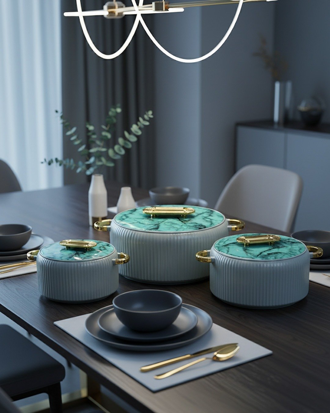 Add a touch of elegance to your table with this exquisite emerald green marble-finish casserole set. The gold-plated handles paired with the luxurious green lids create a stunning contrast, making these casseroles both functional and fashionable. Perfect for maintaining food temperature while impressing your guests with impeccable taste in serveware.