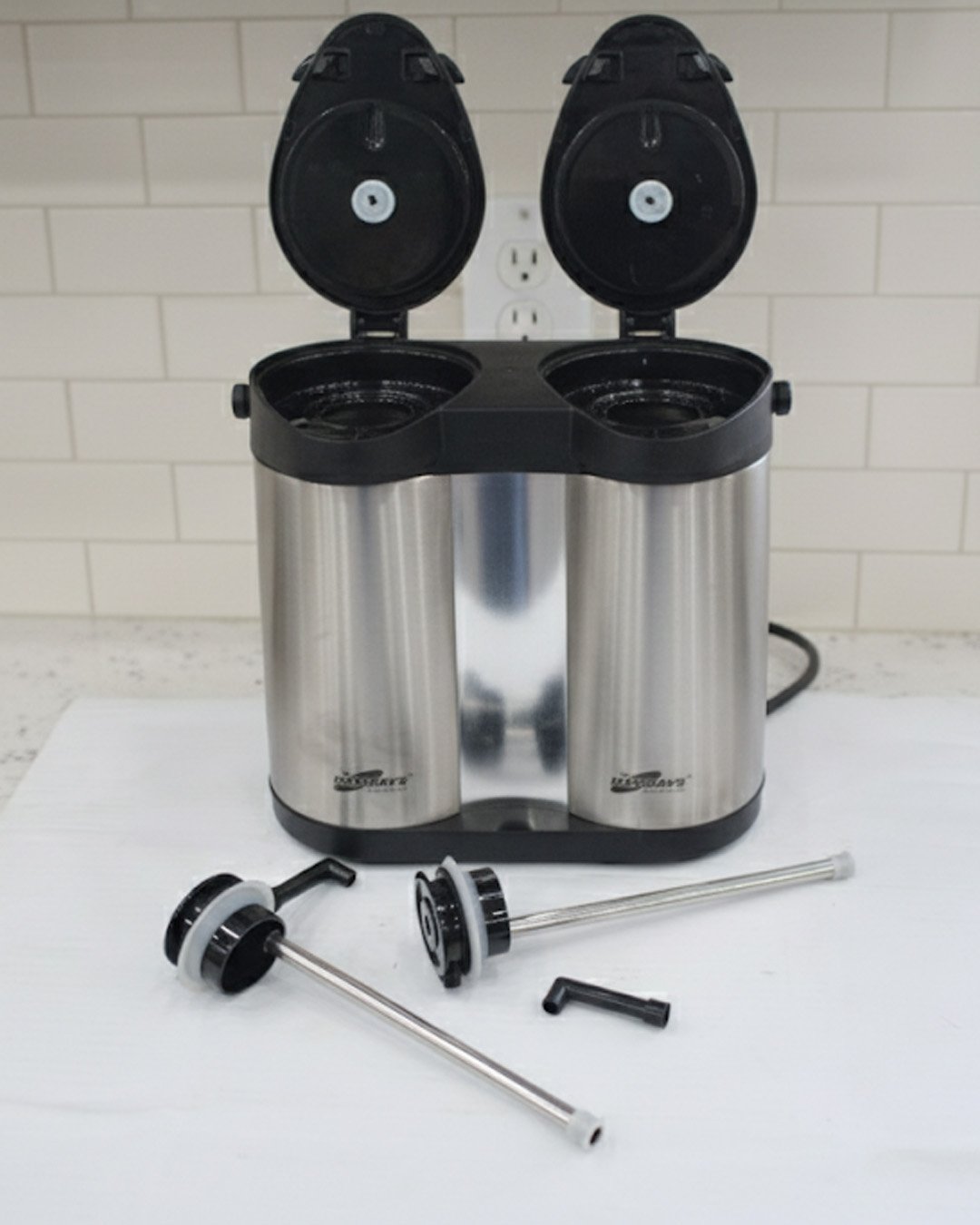 Double Airpot Thermal Flask – Dual 2+2 Liter Stainless Steel Tea & Coffee Dispenser with Rotating Base & Pump Action