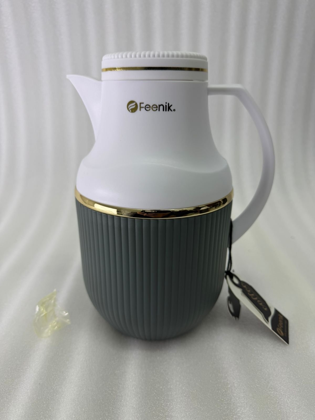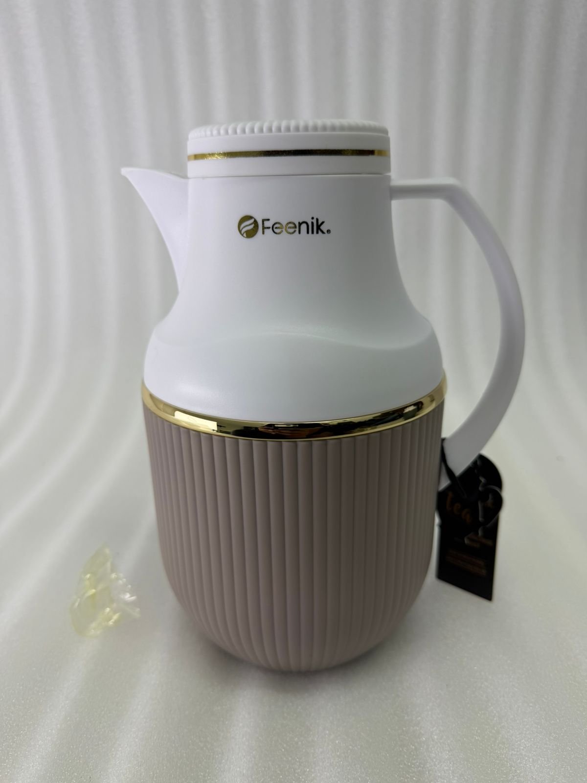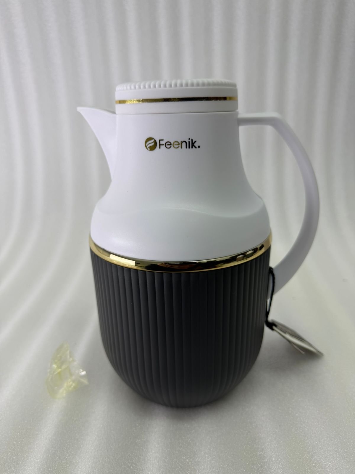 Elevate your beverage service with the Feenik 1 Liter Thermal Flask, where contemporary aesthetics meet high-performance insulation. Designed with a striking dual-tone finish and elegant gold accents, this flask keeps your coffee piping hot or your water refreshingly cold for hours. Its ergonomic handle and precision spout ensure a spill-free pour, making it the perfect centerpiece for modern kitchens, office meetings, or sophisticated brunch setups.