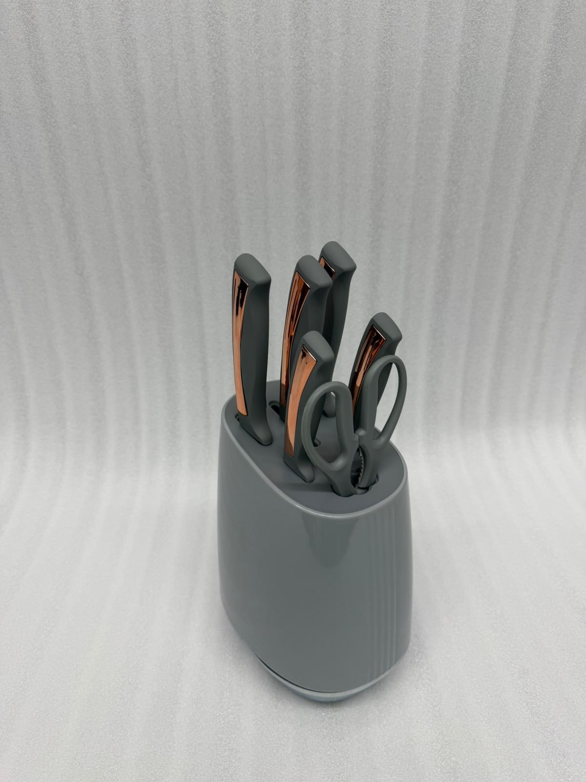 6-Piece Knife Set with Copper-Accent Handles and Grey Storage Block