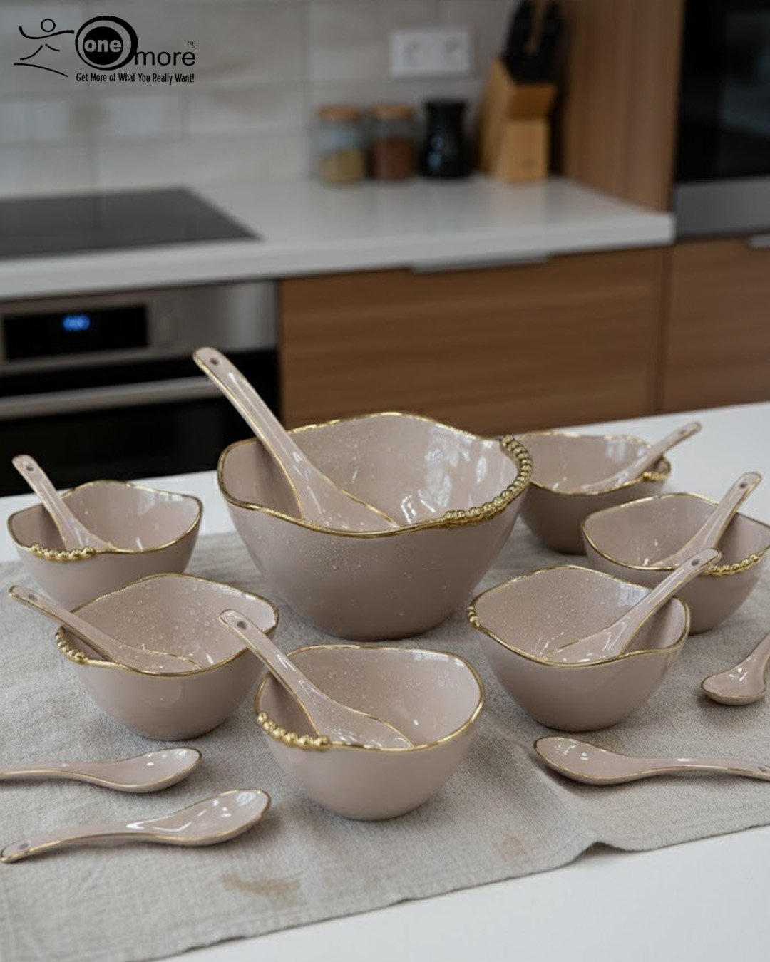Elegant Gold Accents: Each piece features a sophisticated gold-rimmed edge and a unique beaded gold detail on the bowls for a luxurious look.