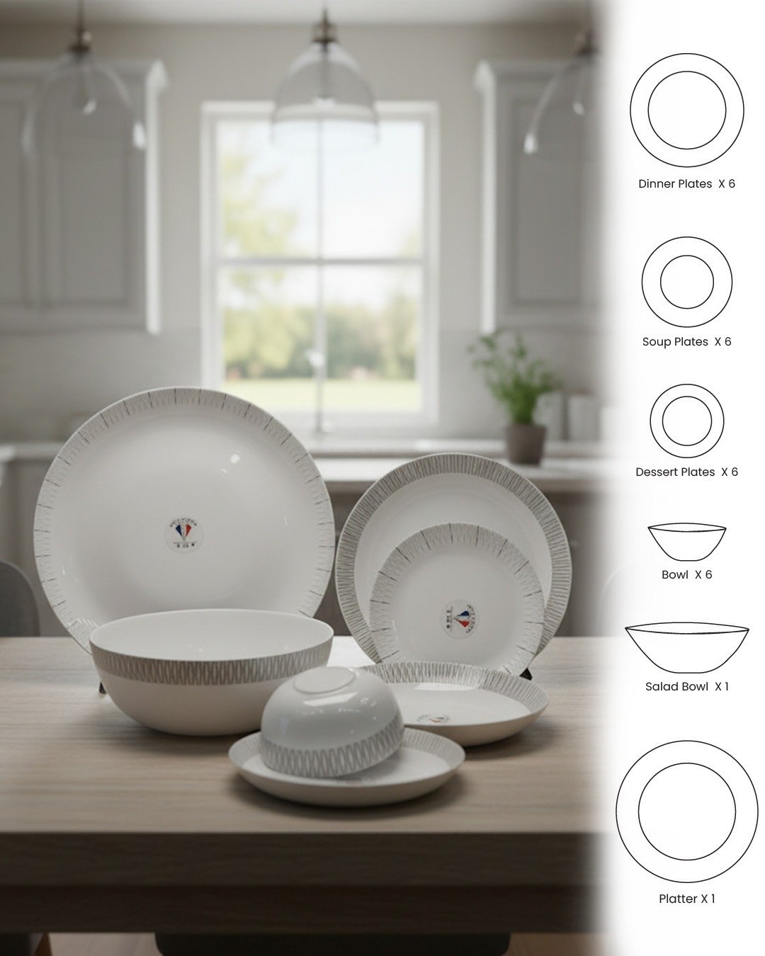 Enhance your table setting with this sophisticated 26-piece opalware dinner set, showcasing a clean and modern grey line pattern. Designed for everyday elegance and special gatherings, this set combines minimal aesthetics with durable opal glass, offering both beauty and long-lasting performance.