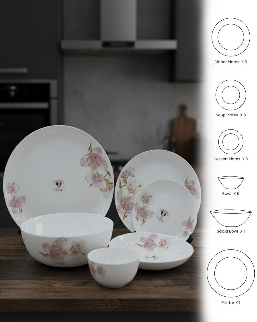 Add this stylish floral-themed dinner set to your kitchen and enjoy a perfect blend of aesthetics and functionality in every meal.