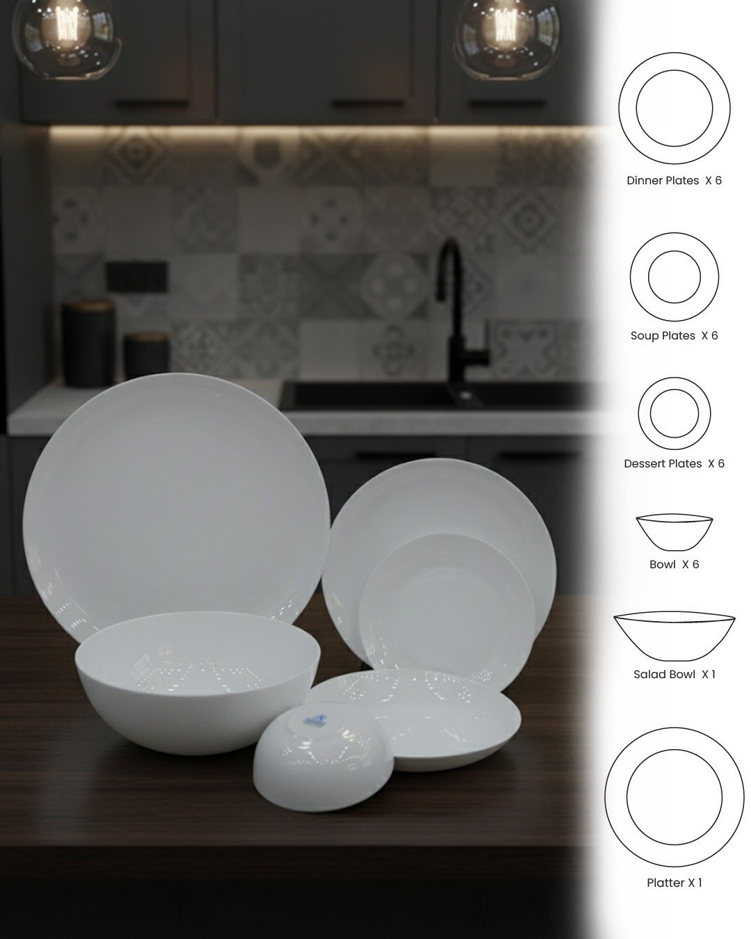 Timeless, elegant, and effortlessly versatile — this 26-piece Classic Pure White dinnerware set is the perfect addition to any dining setup. With its sleek, minimalist design and smooth finish, it complements any table décor, making it ideal for both casual meals and formal occasions.