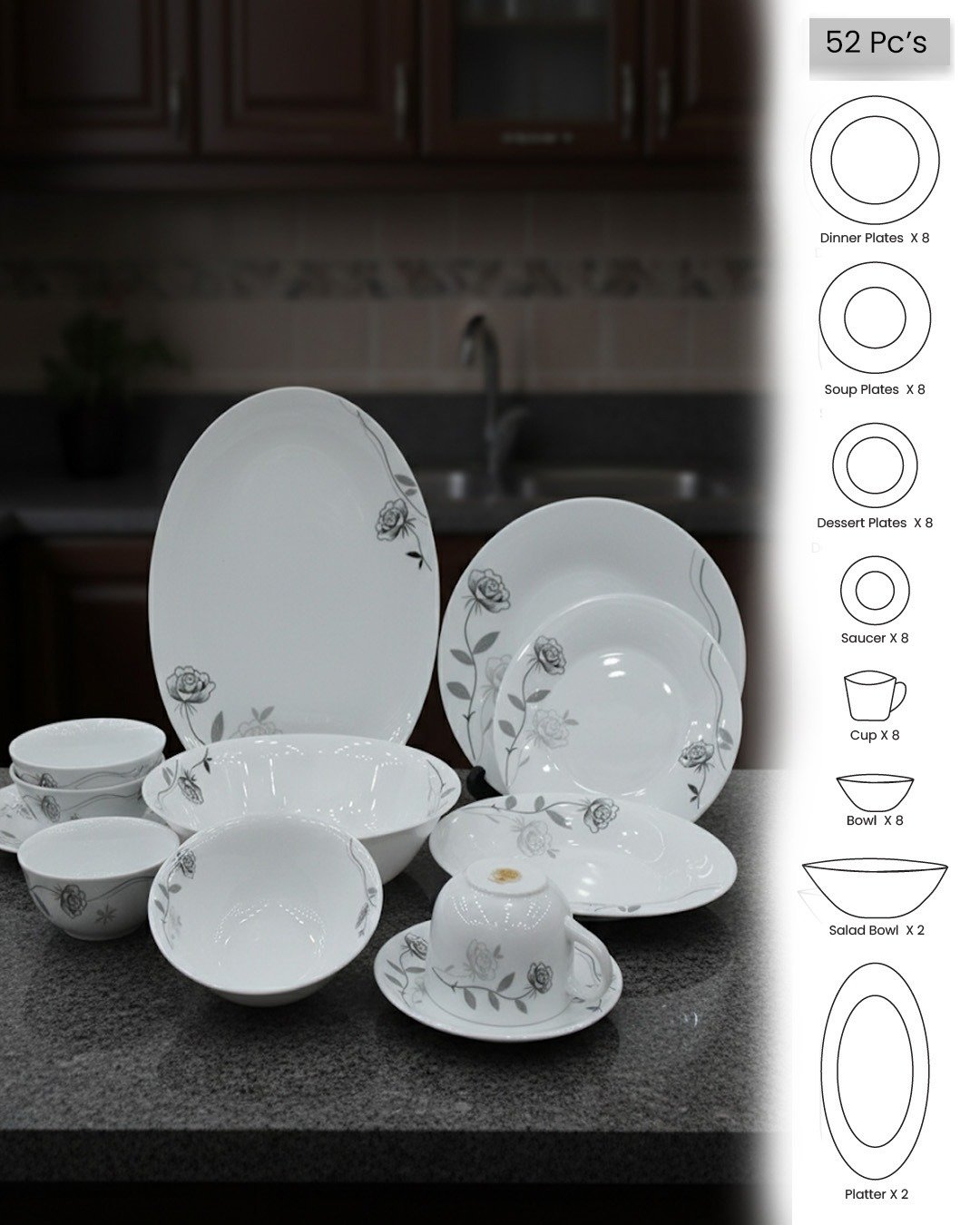 Grace your dining table with this beautifully crafted opal dinnerware set, featuring a soft white base adorned with delicate grey floral motifs. Perfectly suited for both everyday meals and special occasions, this set combines timeless elegance with modern durability.