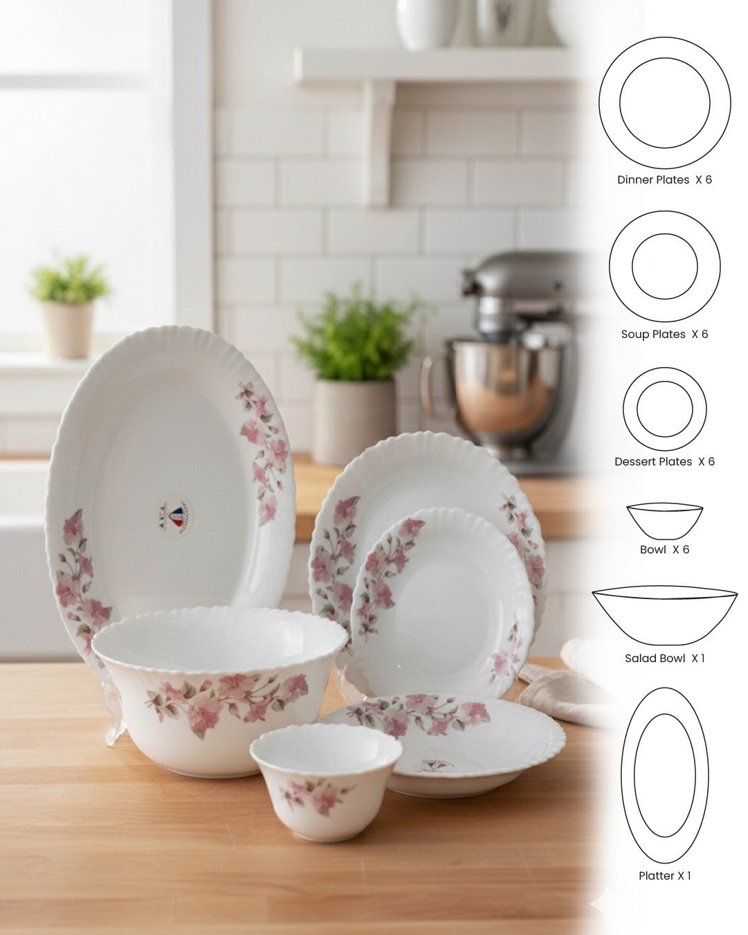 Blossom Charm 26-Piece Opalware Dinner Set Timeless Elegance in Every Meal