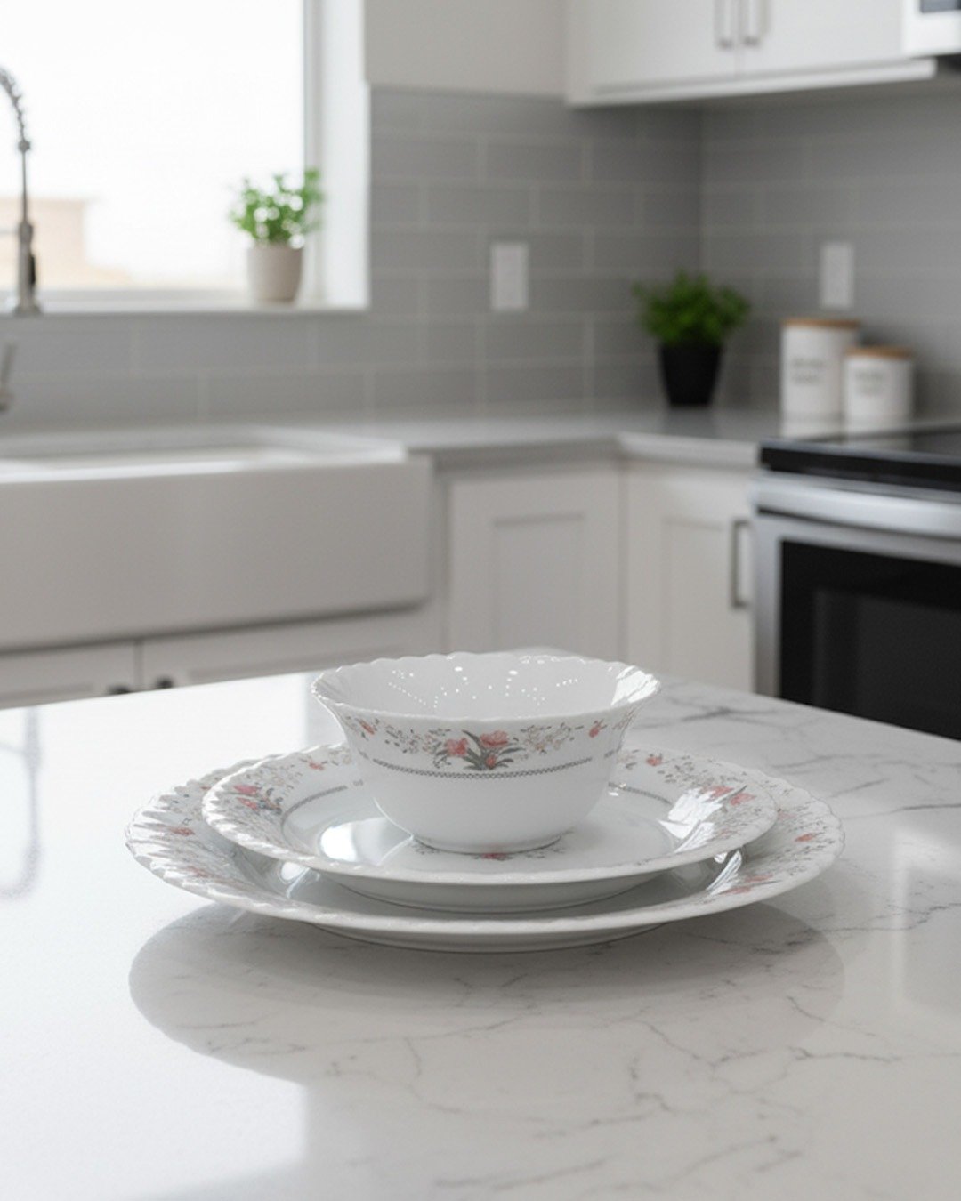 Give your dining experience a refreshing floral elegance with the Rosé Grace Opalware Set — the perfect blend of beauty and durability.