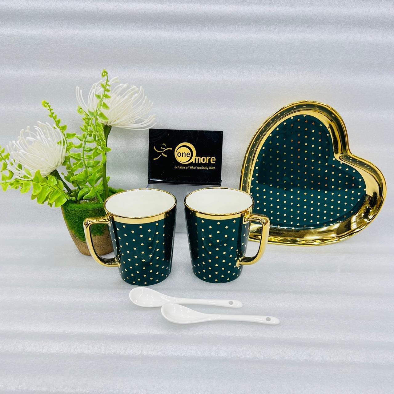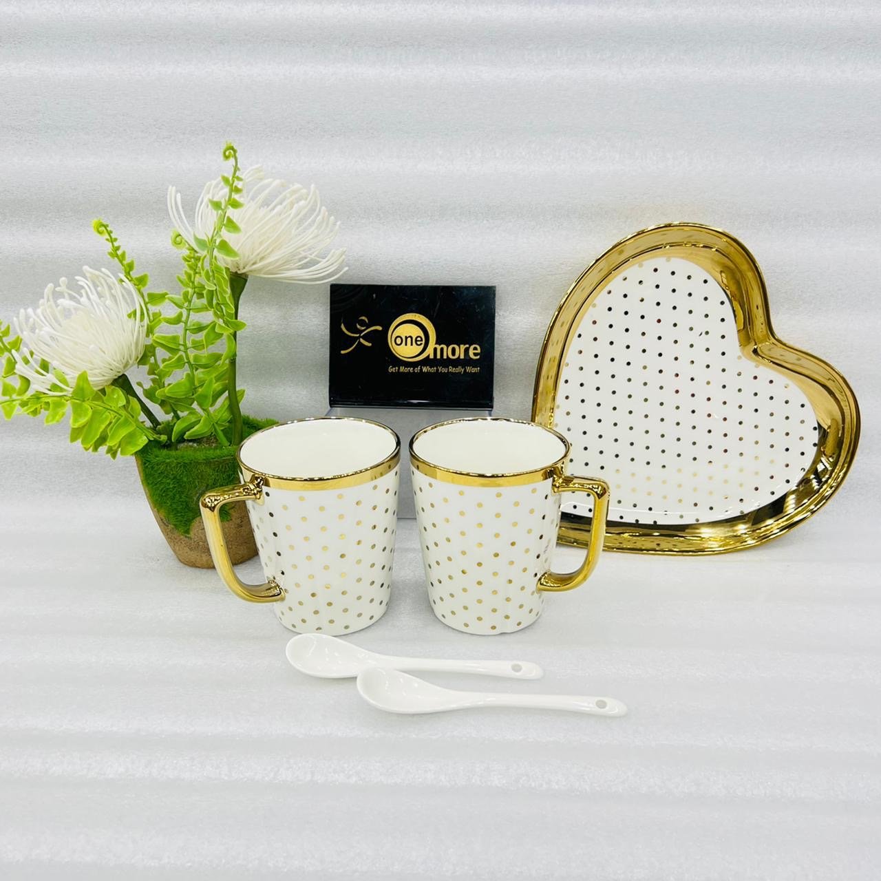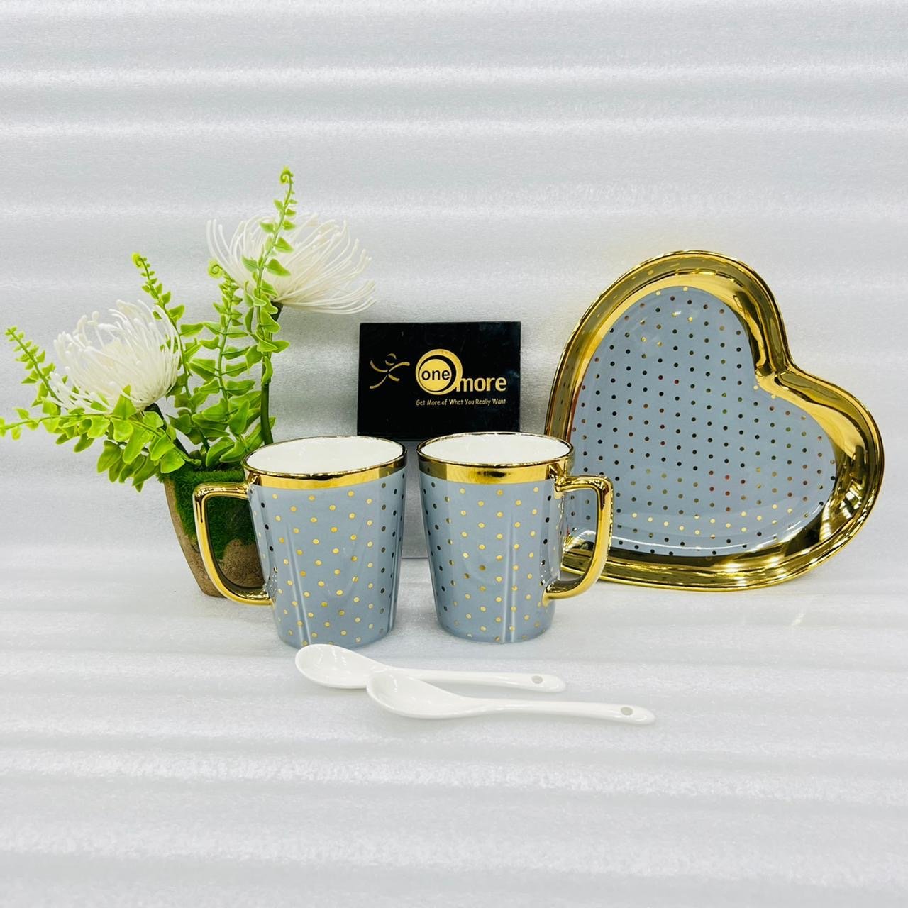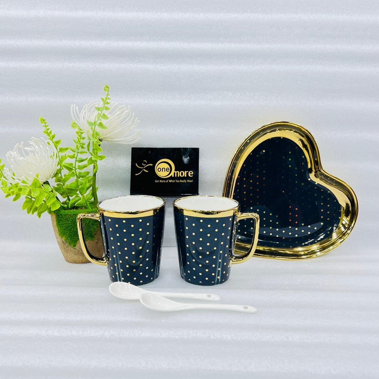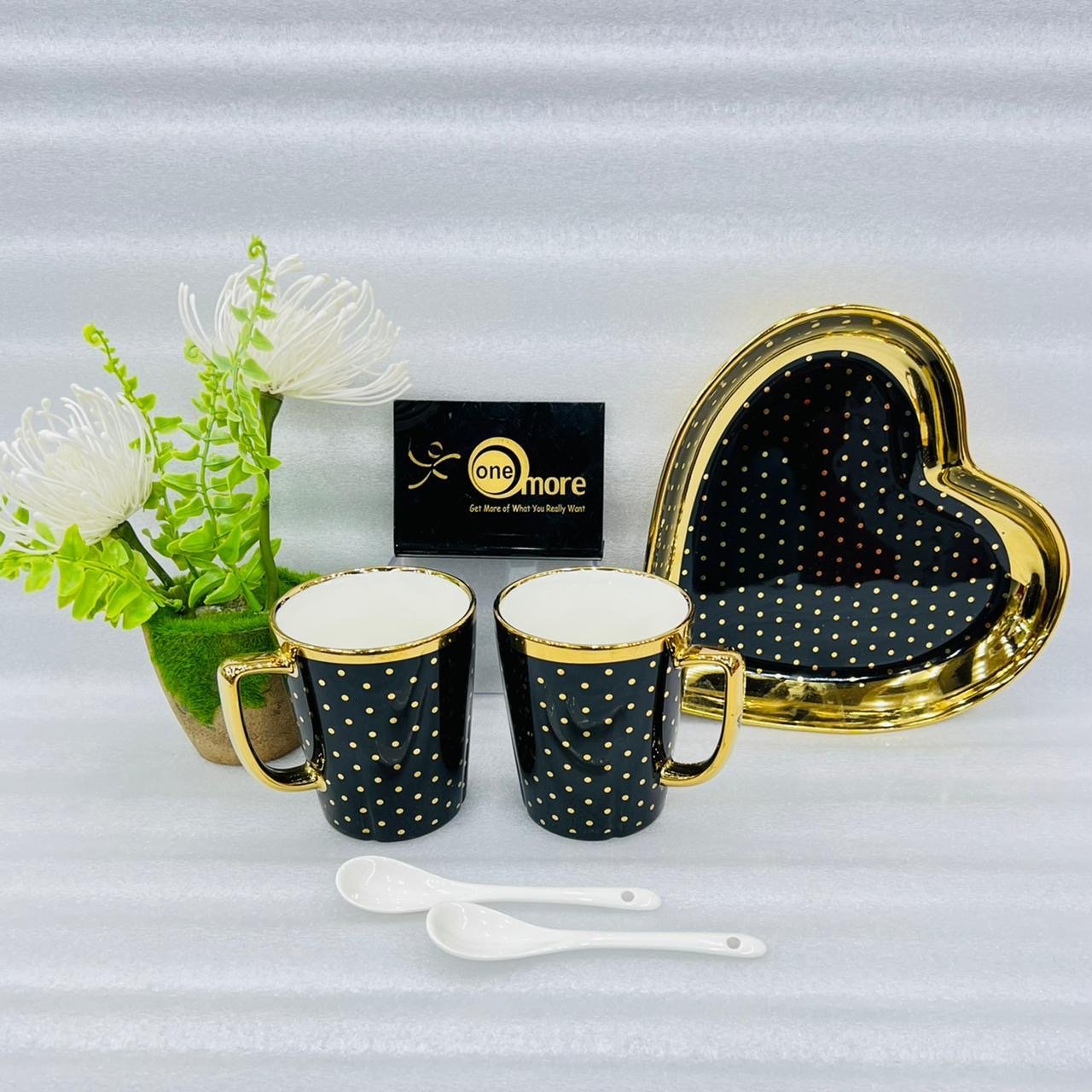Elevate your coffee rituals or surprise a loved one with this charming 5-piece stoneware couple set. Designed for both style and durability, this set features a sophisticated polka dot pattern accented with luxurious gold-plated rims and handles. Whether it is a quiet morning brew or a romantic dessert serving, the heart-shaped tray adds a touch of warmth to every occasion. Available in a vibrant palette of 8 colors, it is the perfect gift for weddings, anniversaries, or housewarmings.