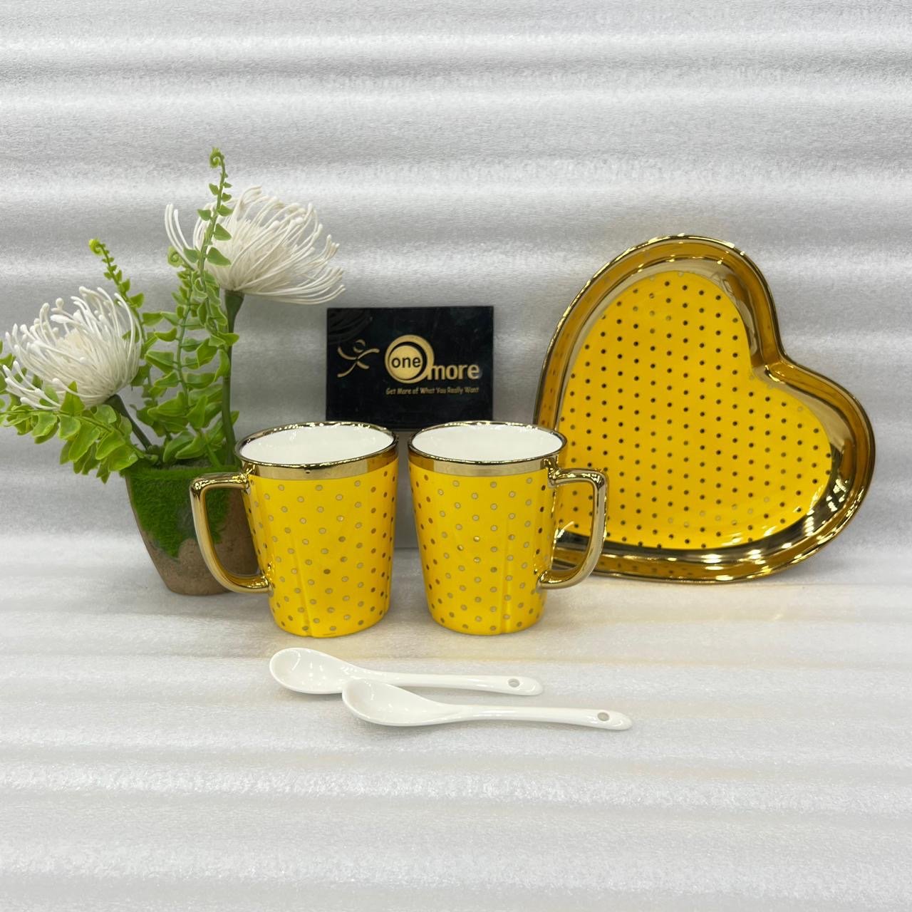 Be the first to review “Polka Dot Stoneware Couple Mug Set with Heart Tray”