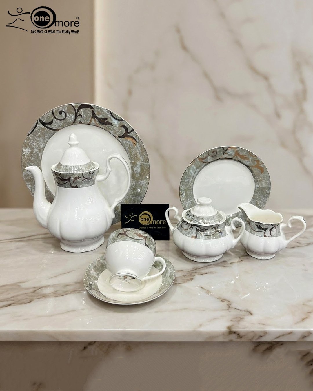Elegant Marble-Patterned Ceramic Tea Set – 24 Pieces